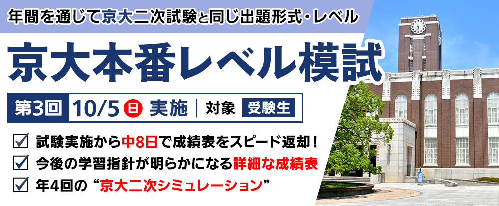 EVENTS 東岡山校 HOME » イベント情報 » 京大本番レベル模試 京大本番レベル模試 2025.09.25 東岡山校 2025-10-05 実施 東岡山校:受験者以外 11:00~18:00まで開館 岡山瀬戸校16時~開館(10/22本部研修のため) 高2京大本番レベル模試 特別招待講習・招待状請求(講座リスト)・資料請求・無料体験・個別説明会のお申込みはこちら ツイートする シェアする LINEに送る