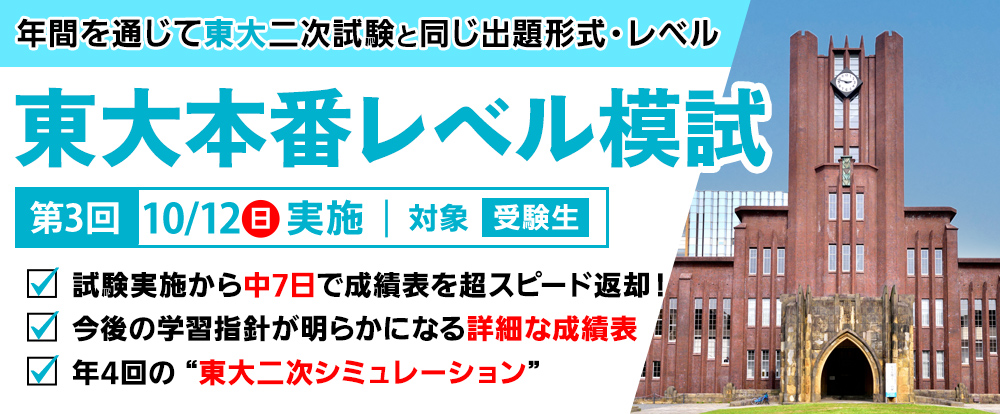EVENTS 東岡山校 HOME » イベント情報 » 東大本番レベル模試 東大本番レベル模試 2025.09.25 東岡山校 2025-10-12 実施 東岡山校:受験者以外 11:00~18:00まで開館 高2九大本番レベル模試 高2東大本番レベル模試 特別招待講習・招待状請求(講座リスト)・資料請求・無料体験・個別説明会のお申込みはこちら ツイートする シェアする LINEに送る
