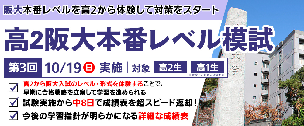 EVENTS 東岡山校 HOME » イベント情報 » 高2阪大本番レベル模試 高2阪大本番レベル模試 2025.09.25 東岡山校 2025-10-19 実施 東岡山校:受験者以外 11:00~18:00まで開館 阪大本番レベル模試 全国統一中学生テスト 特別招待講習・招待状請求(講座リスト)・資料請求・無料体験・個別説明会のお申込みはこちら ツイートする シェアする LINEに送る