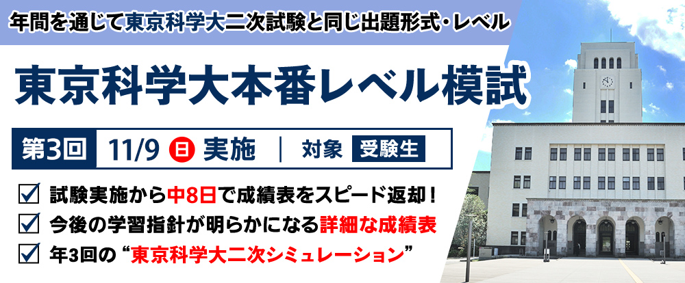 EVENTS 東岡山校 HOME » イベント情報 » 東京科学大本番レベル模試 東京科学大本番レベル模試 2025.10.22 東岡山校 2025-11-09 実施 東岡山校:受験者以外 11:00~18:00 まで開館 高2一橋大本番レベル模試 高2東京科学大本番レベル模試 特別招待講習・招待状請求(講座リスト)・資料請求・無料体験・個別説明会のお申込みはこちら ツイートする シェアする LINEに送る