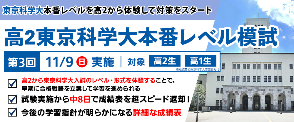 EVENTS 東岡山校 HOME » イベント情報 » 高2東京科学大本番レベル模試 高2東京科学大本番レベル模試 2025.10.22 東岡山校 2025-11-09 実施 東岡山校:受験者以外 11:00~18:00まで開館 東京科学大本番レベル模試 大学合格基礎力判定テスト 特別招待講習・招待状請求(講座リスト)・資料請求・無料体験・個別説明会のお申込みはこちら ツイートする シェアする LINEに送る