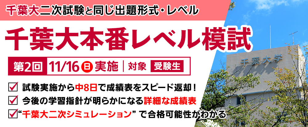 EVENTS 東岡山校 HOME » イベント情報 » 千葉大本番レベル模試 千葉大本番レベル模試 2025.10.22 東岡山校 2025-11-16 実施 東岡山校:受験者以外 11:00~18:00まで開館 大学合格基礎力判定テスト 神戸大本番レベル模試 特別招待講習・招待状請求(講座リスト)・資料請求・無料体験・個別説明会のお申込みはこちら ツイートする シェアする LINEに送る