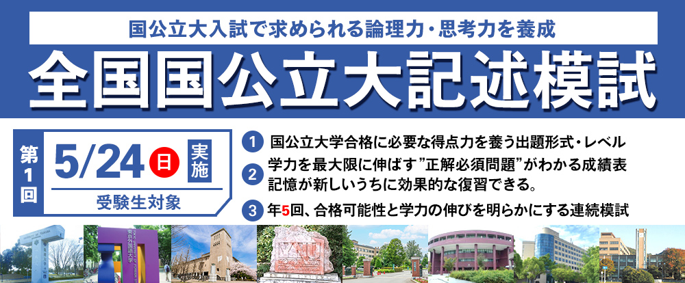 EVENTS 東岡山校岡山瀬戸校 HOME » イベント情報 » 全国国公立大記述模試 全国国公立大記述模試 2026.04.23 東岡山校岡山瀬戸校 2026-05-24 実施 東岡山校:受験者以外 11:00~18:00まで開館岡山瀬戸校:受験者以外 11:00~18:00まで開館 開館 早大・慶大レベル模試 特別招待講習・招待状請求(講座リスト)・資料請求・無料体験・個別説明会のお申込みはこちら ツイートする シェアする LINEに送る
